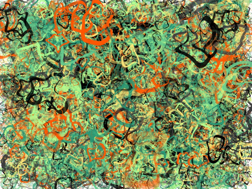 After playing some more with a particle engine I’d written, I started to wonder what would happen if I drew using the particles as anchor points. The image above is the result, a massive abstract mess!!